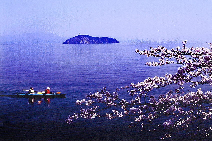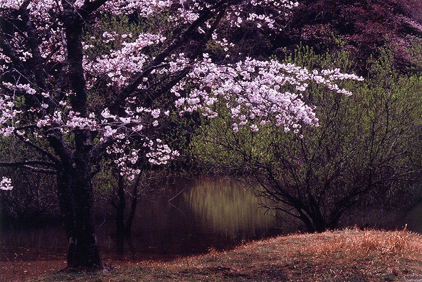 画題 「 ダ ム 湖 の 春 」 伊藤 圀彦