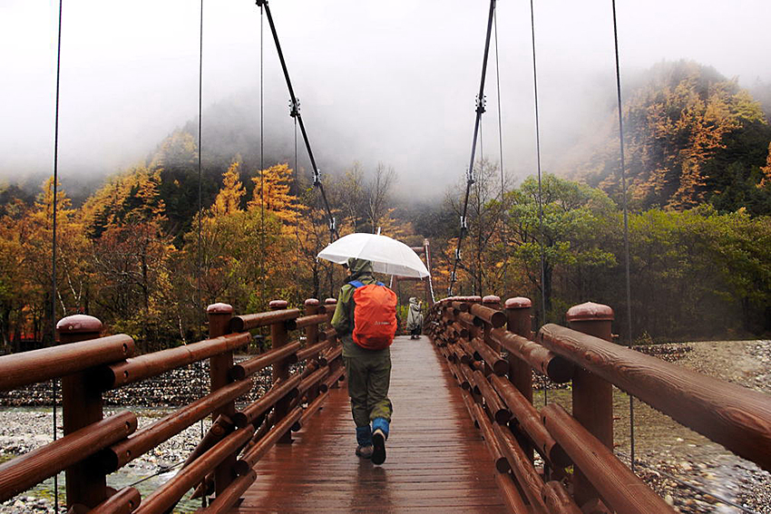 画題 「 雨の上高地を歩む 」 西村 俊宏
