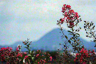 「 サルスベリと三上山 」 長谷川 万智子