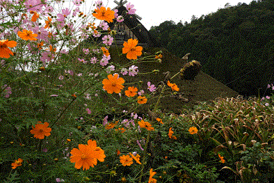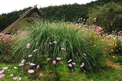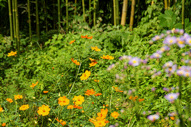 「 竹藪と黄花コスモス 」 佐藤 廣
