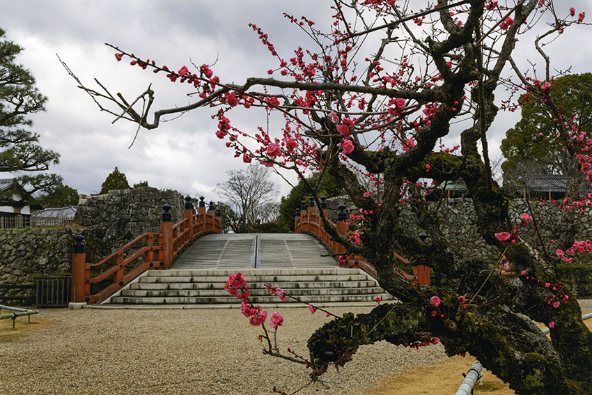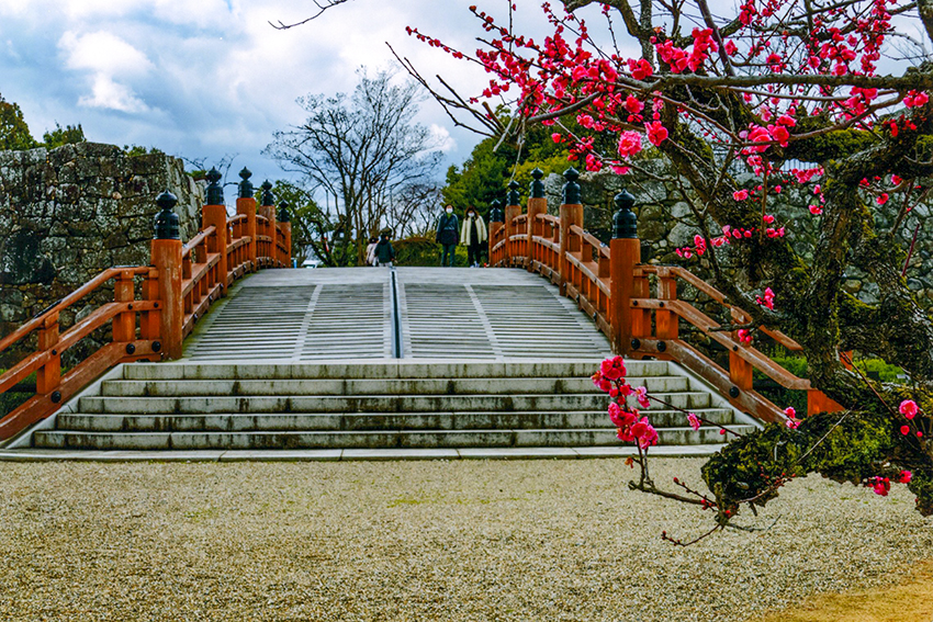 画題 「 本 丸 へ の 橋 と 紅 梅 」 村井 義和