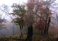 「 霧の紅葉 (大台ケ原にて) 」 |