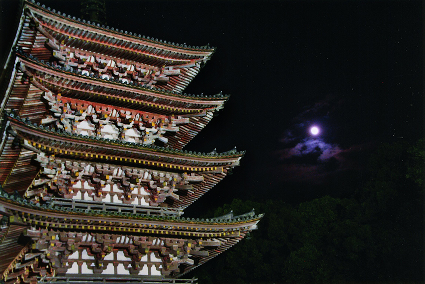 画題 「 月明りに映える五重塔 」 西村 俊宏