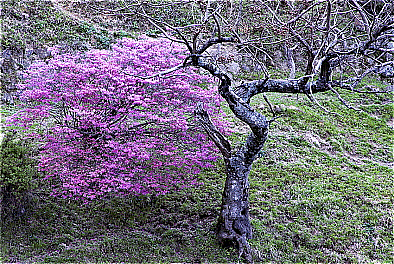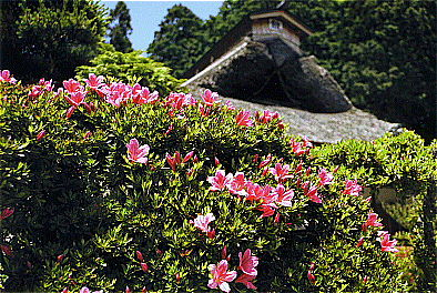 「 茅葺屋根とつつじ 」 |