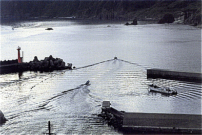 「 夜明けの帰港 」 |