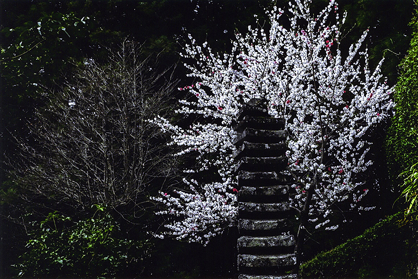 画題 「 花 桃 と 石 塔 」 高橋 直美