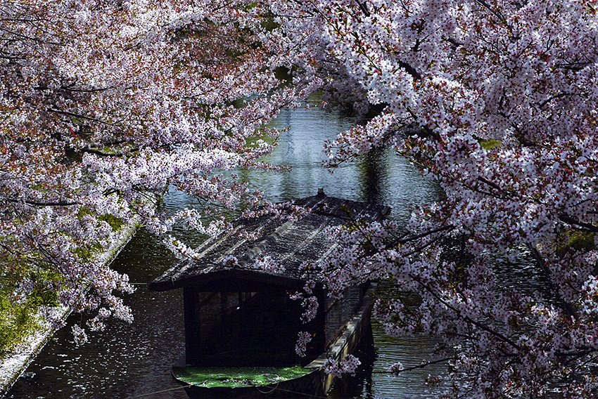 画題 「 八幡背割りの桃の花 」 佐藤 三千子