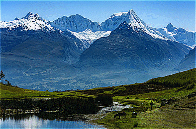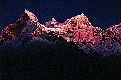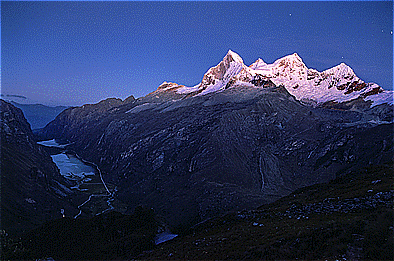 ウィルカコーチャ湖からのブランカ山群 |