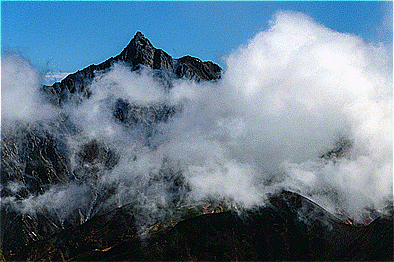 「 雲湧く槍ヶ岳 」 |
