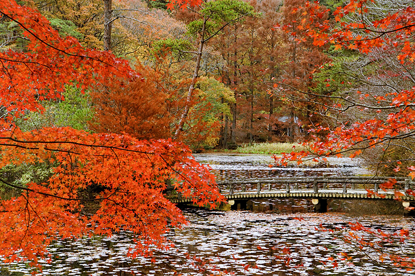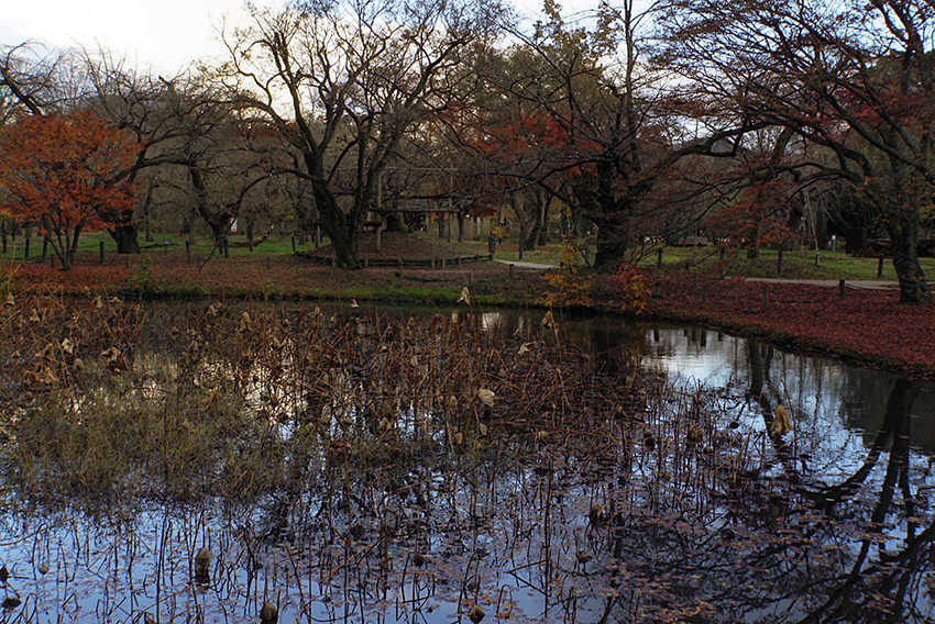 「 蓮 池 の 紅 葉 」 長谷川 万智子
