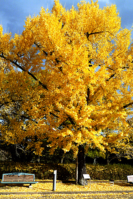「 城 跡 黄 葉 」 長谷川 万智子