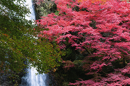 「 紅 葉 の 箕 面 大 滝 」 池上 擴朗