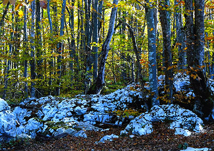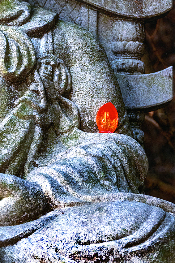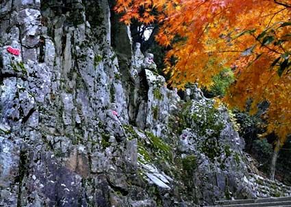 「 岩 上 仏 と 紅 葉 」 村井 義和