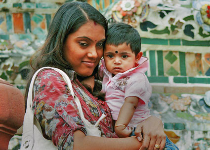 「 仏 塔 参 拝 の 親 子 」 村井 義和