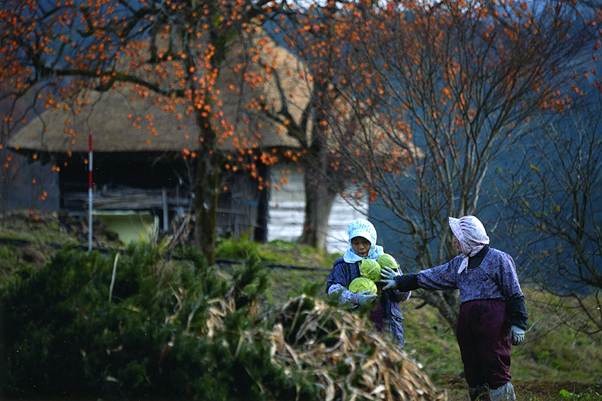 「 かやぶきの里に光の糸ぐるま 」 奥村 博己
