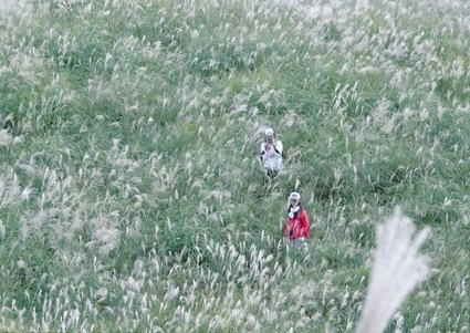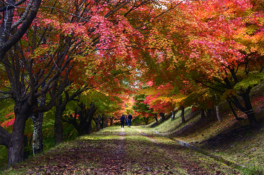 「 紅 葉 に 映 え る 二 人 」 高須 博