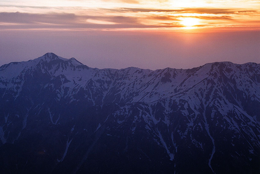 「 笠 ヶ 岳 の 夕 陽 」 藪下 正弘