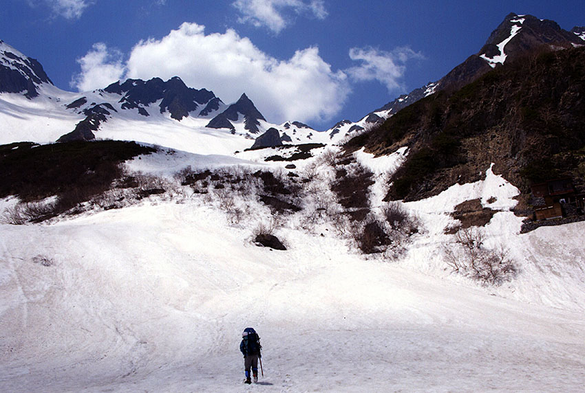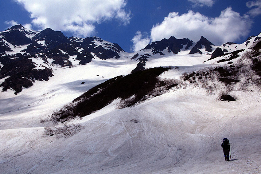 「 涸沢カールをゆく(涸沢岳、北穂高岳) 」 藪下 正弘