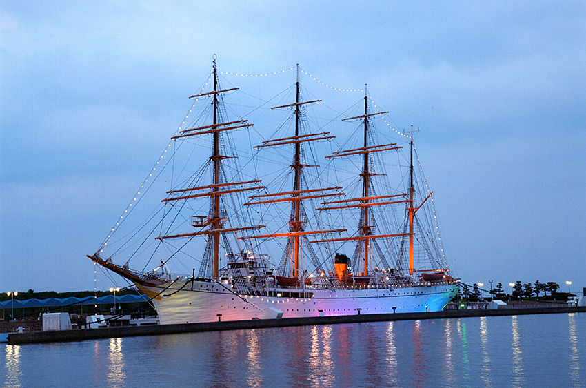 「 帆 船 海 王 丸 ライトアップ 」 藪下 正弘